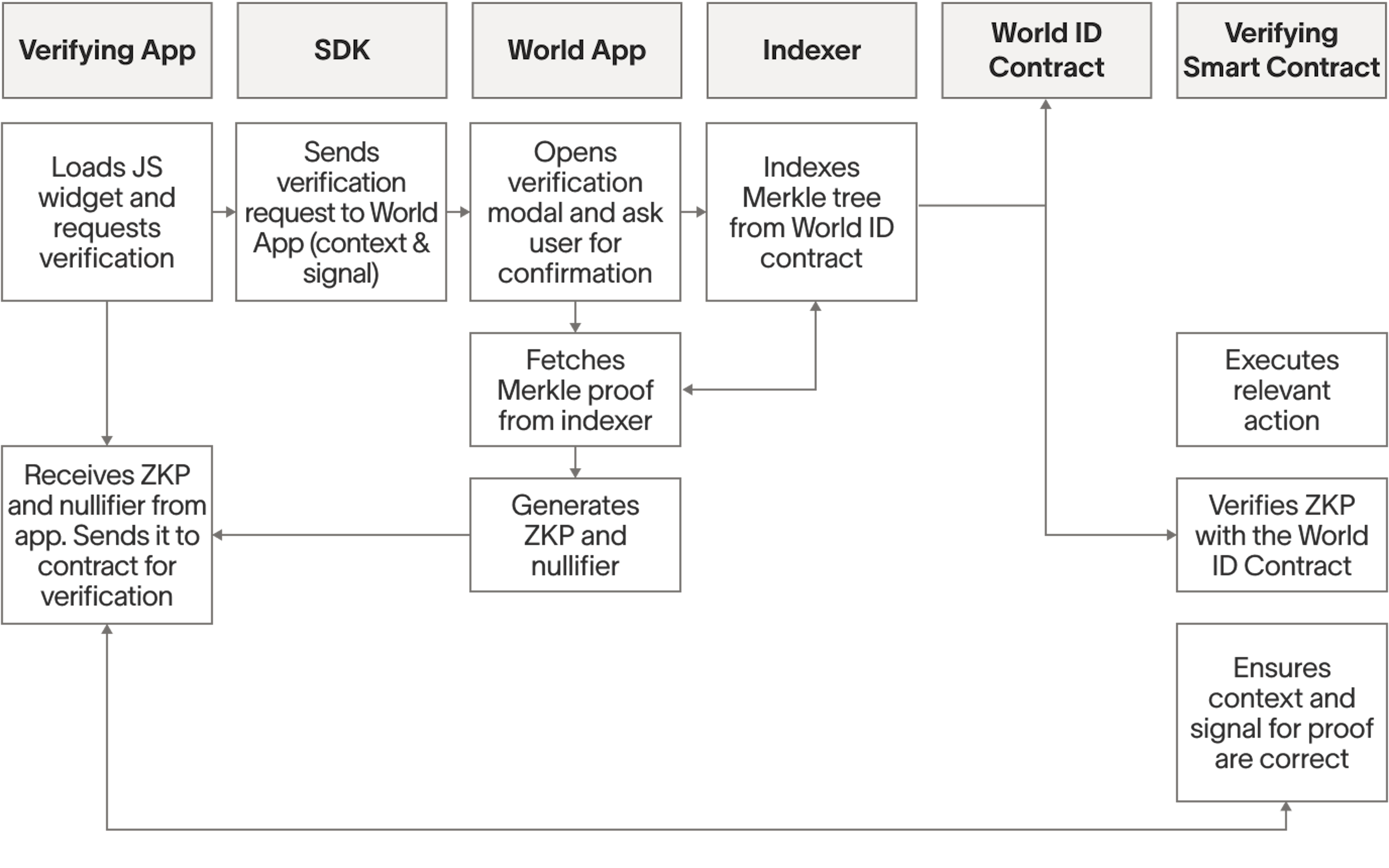 ZKPs are used to preserve the user's privacy and avoid cross-application tracking. Whenever a user makes use of their World ID, ZKPs are used to prove they are a unique human. This means that no third-party will ever know a user's World ID or wallet public key, and in particular cannot track users across applications. It also guarantees that using World ID is not tied to any biometrical data or iris codes. When you want to prove you are a unique human, you should be able to do so without revealing any personal information about yourself.